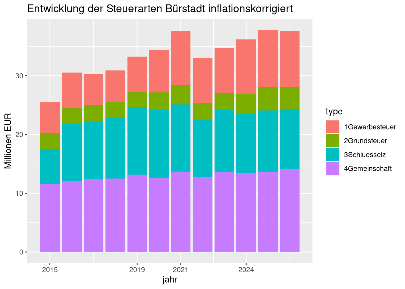 data.frame(jahr=e$jahr, mio=e$grundsteuer/1e6, type='2Grundsteuer'),