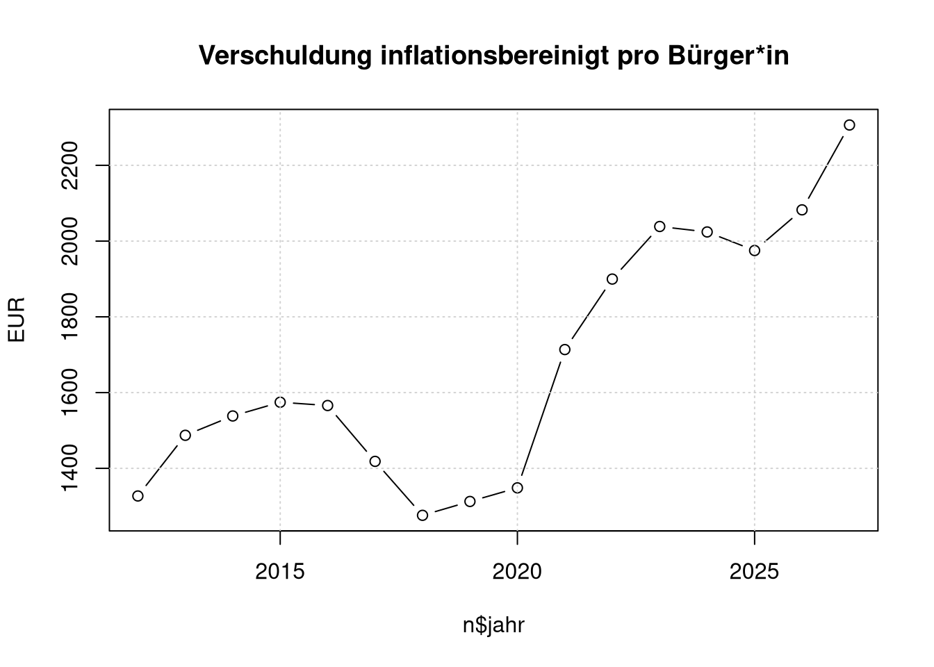 main='Verschuldung inflationsbereinigt pro Bürger*in');