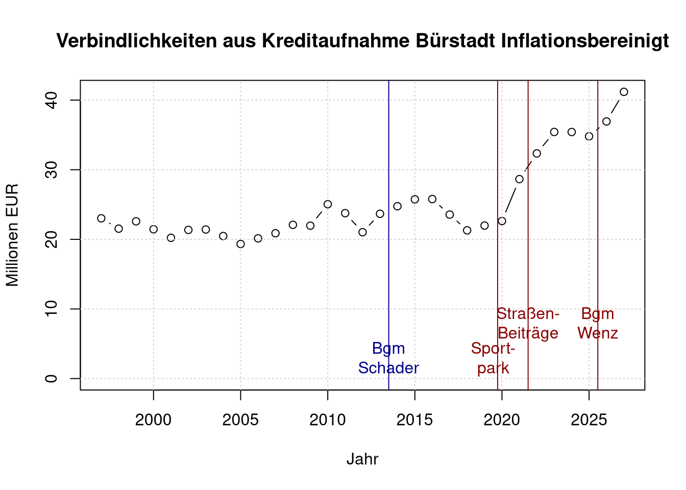 main='Verbindlichkeiten aus Kreditaufnahme Bürstadt',