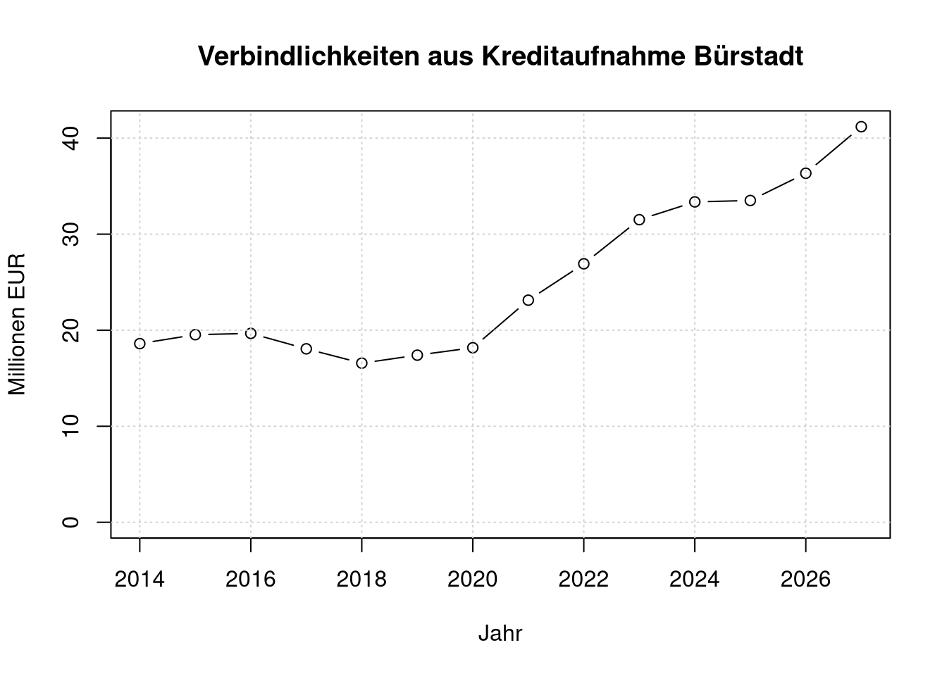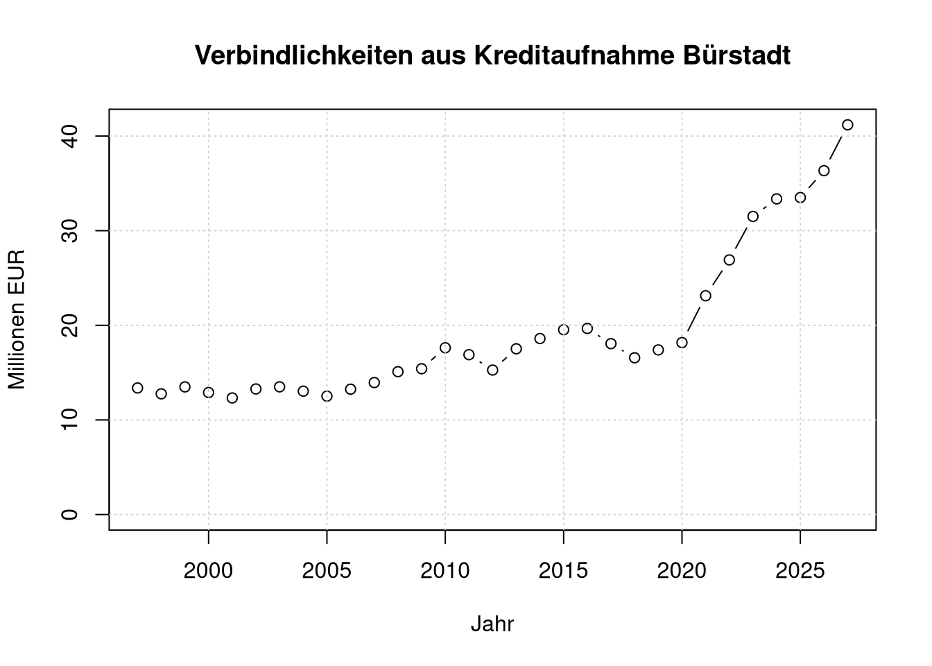 main='Verbindlichkeiten aus Kreditaufnahme Bürstadt',