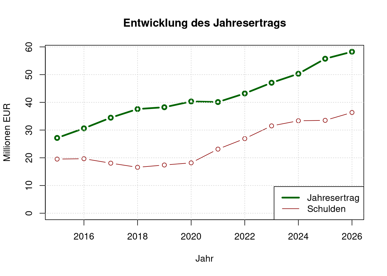 xlab='Jahr', ylab='Millionen EUR')