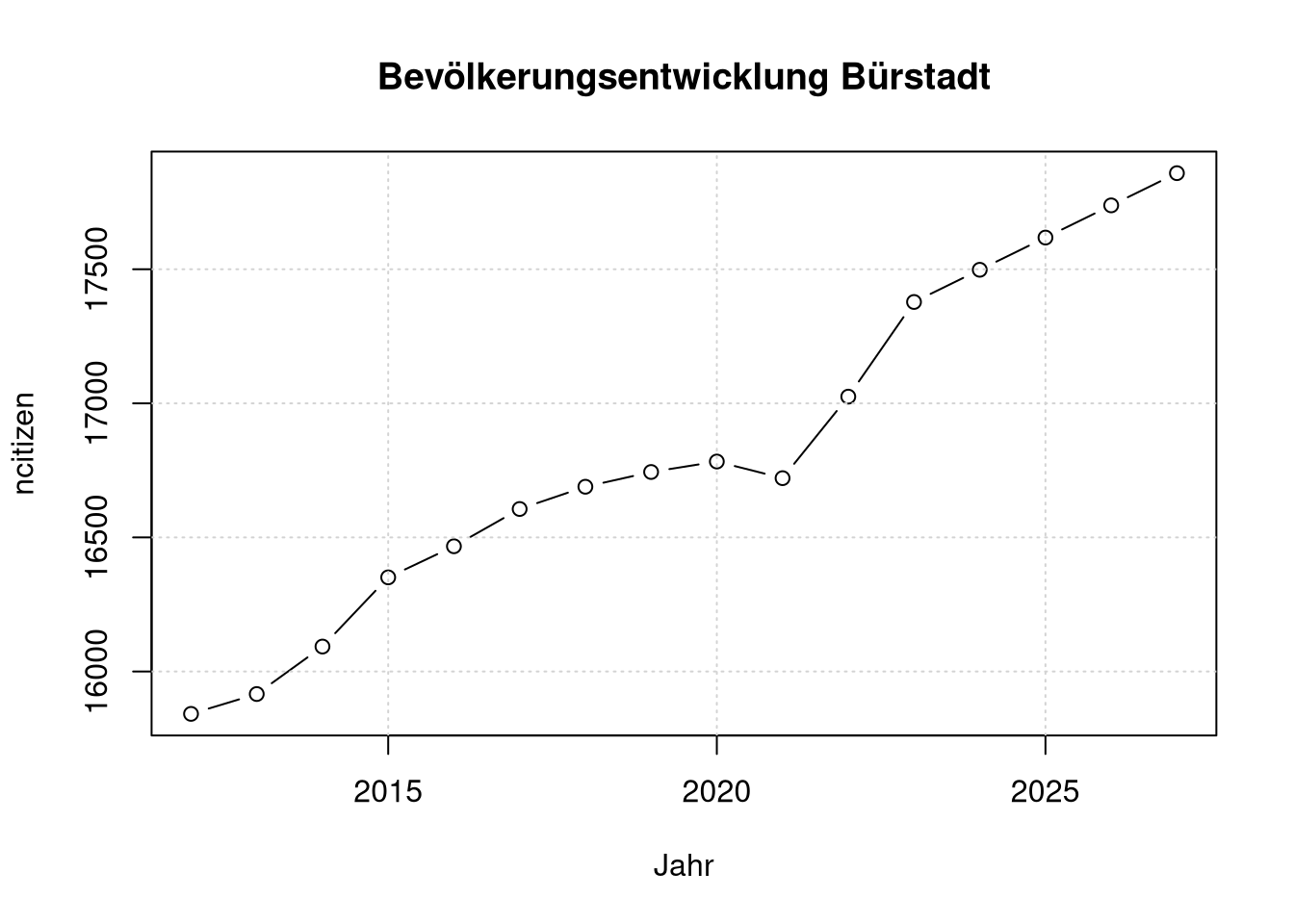 main='Bevölkerungsentwicklung Bürstadt');